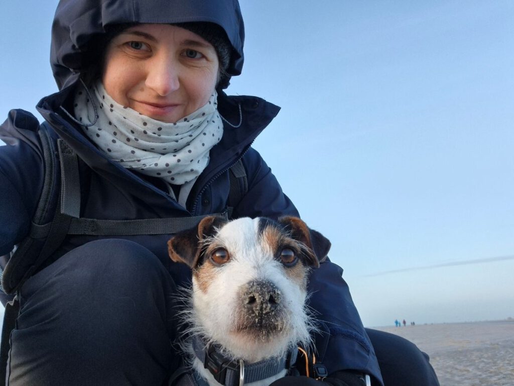 - Ein Foto von Snooker und mir während unseres Kurzurlaubs zum Jahreswechsel 2025/26. Entstanden ist es am 29. Dezember 2025 am Strand von St. Peter-Ording. Es war sehr kalt, sehr windig, aber auch sehr schön.